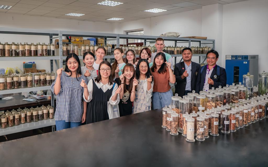 The one-week program includes not only special courses like TCM Techniques and Local Herbal Medicine of Guizhou, but also various exciting activities such as ice-breaking, intangible cultural heritage experience, city walk and site visits. Ten teachers and students from Perm State Medical University and Mahidol University and over twenty Chinese buddies were invited to the program. Participants tasted the local food, learned the paper cutting art of the Nuo plays in Zunyi and had a better grasp of TCM.